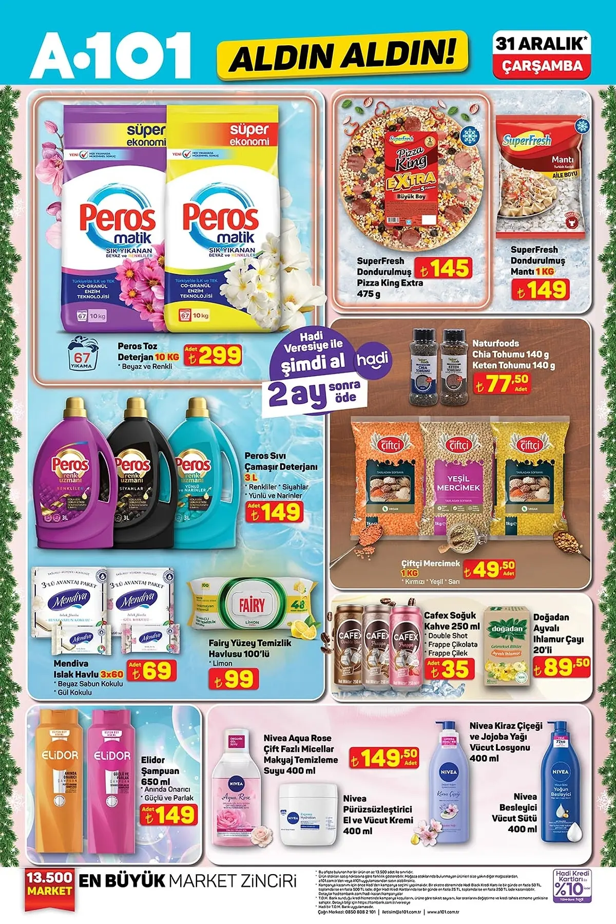 31 Aralık 2025 tarihli A101 Aldın Aldın kataloğu yayınlandı. Elektronikten mutfak ürünlerine, ısıtıcılardan elektrikli araçlara kadar birçok ürün yılın son günlerinde indirimli fiyatlarla satışa çıkıyor.