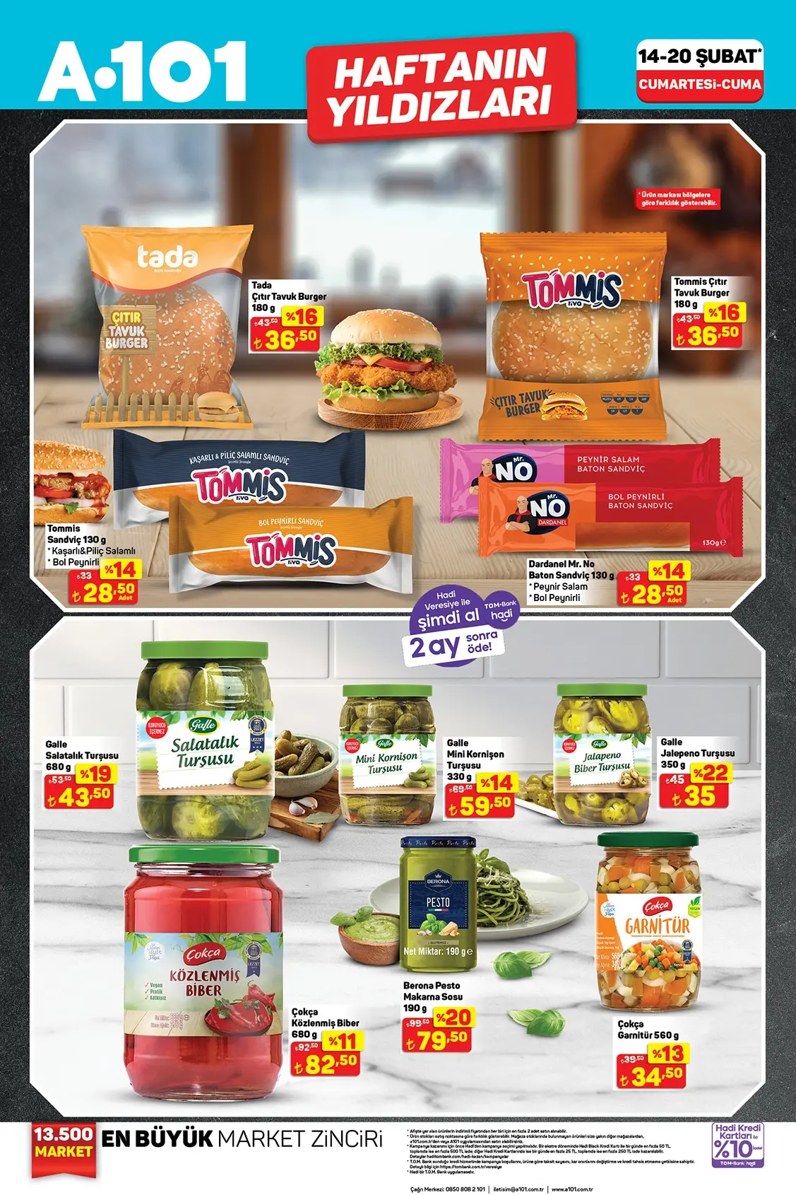 “Haftanın Yıldızları” aktüel kataloğunu paylaşan A101, bu katalogda yer alan indirimli fiyatların 20 Şubat’a kadar geçerli olacağını açıkladı. Bu kapsamda, temel gıda ürünlerinden atıştırmalığa, meyve ve sebzeden dondurulmuş yiyeceklere kadar birçok farklı ürünler indirimli olarak raflardaki yerini aldı.
