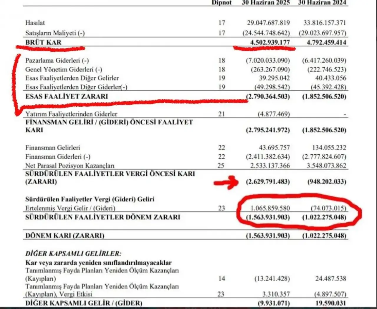 Diğer yandan sermaye artırımı için Sermaye Piyasası Kuruluna yapılan başvuru, 2025 yılı ilk 6 aylık bilançoda zararı düşük göstermek için nasıl oynandığını da gözler önüne serdi.