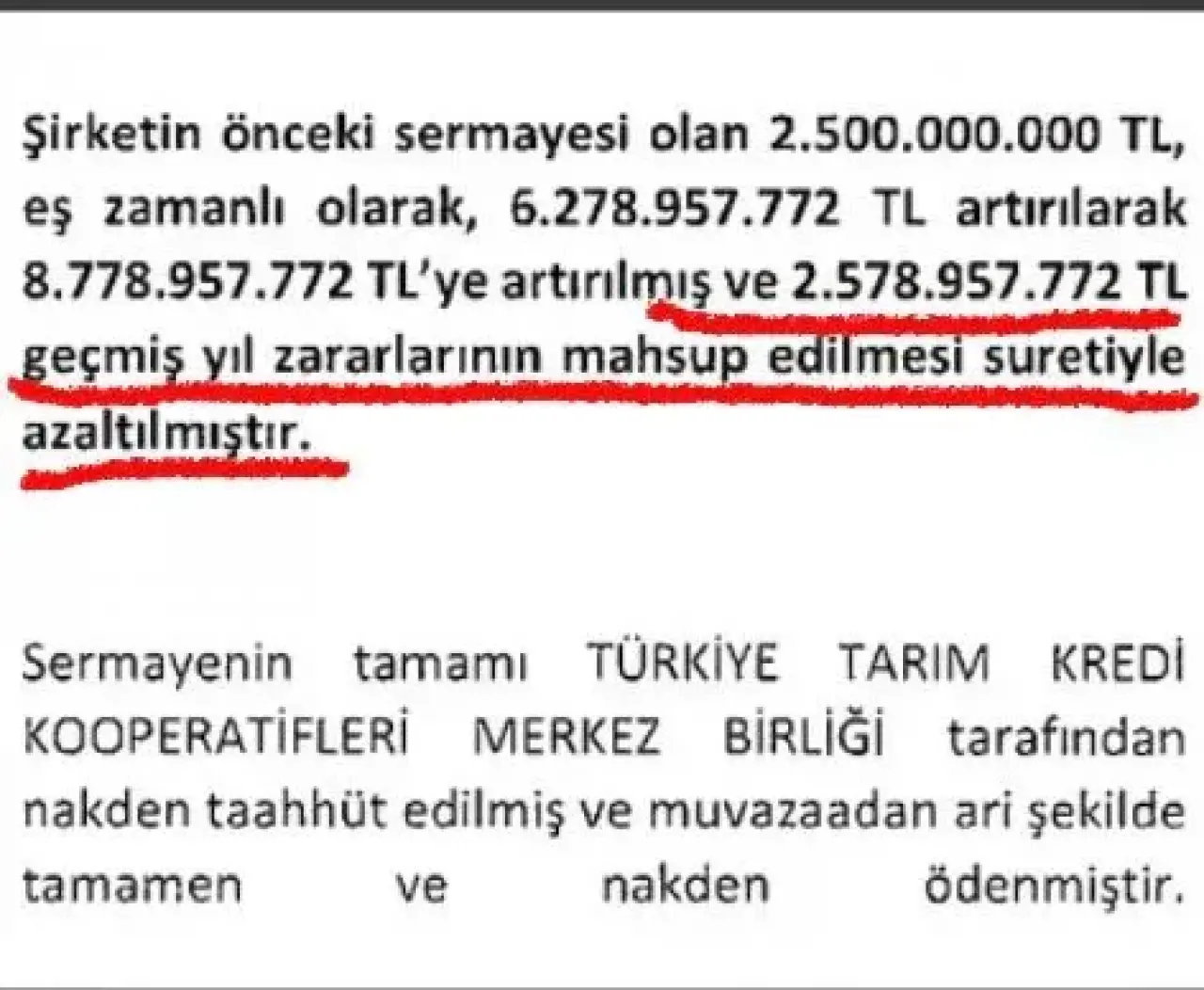 Nitekim 17 Aralık 2025 tarihinde yapılan sermaye artırımı başvurusunda, Merkez Birliğinden aktarılan 6 milyar 278 milyon liralık sermayenin 2 milyar 578 milyon lirasının geçmiş dönem zararlarının kapatılmasında kullanılacağının belirtilmesi, bilanço tartışmalarını yeniden gündeme taşıdı.