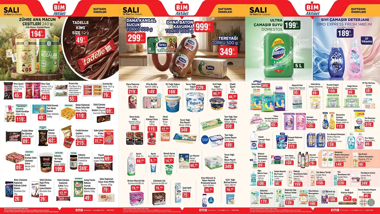 BİM 10 Mart 2026 aktüel ürünler kataloğu yayınlandı. Milyonlarca vatandaşın gündeminde ilk sırada yer alan günün ürünleri 10 Mart Salı günü BİM şubelerinde geçerli olan indirimli ürünler belli oldu. Bugün tüm şubelerden satın alabileceğiniz BİM aktüel ürünlerini sizler için derledik. İşte BİM 10 Mart 2026 aktüel ürünler kataloğu..