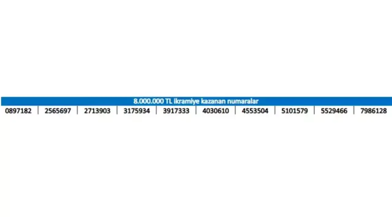 8.000.000 TL ikramiye kazanan numaralar