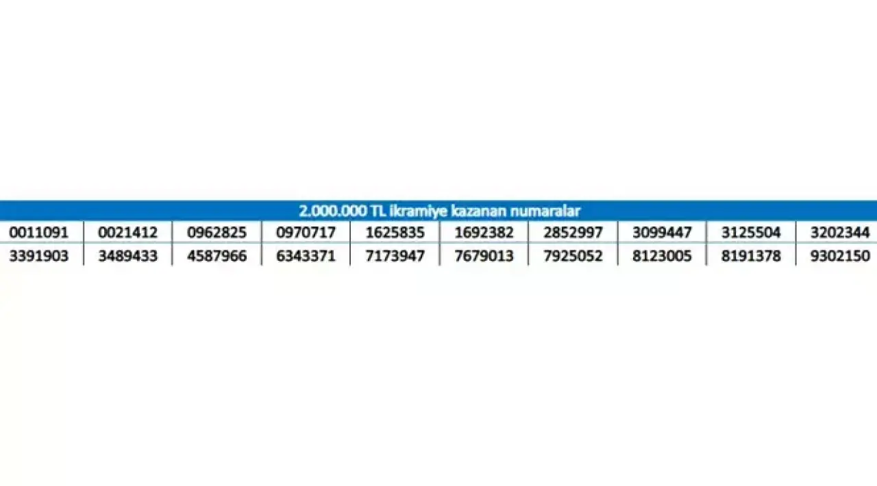 2.000.000 TL ikramiye kazanan numaralar