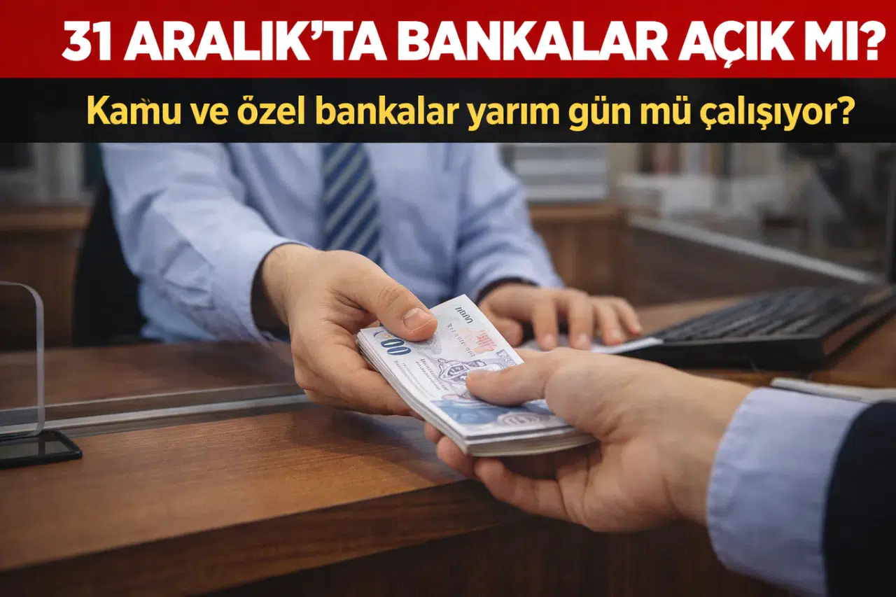 Yılbaşına saatler kala bankalarda işlem yapmayı planlayan milyonlarca vatandaş, “31 Aralık’ta bankalar açık mı?”, “Bankalar yarım gün mü çalışıyor?” sorularına yanıt arıyor. Para transferi, fatura ödeme, kredi işlemleri ve şube işlemleri için bankaya gitmek isteyenler, kamu ve özel bankaların yılbaşı öncesi çalışma saatlerini araştırıyor.