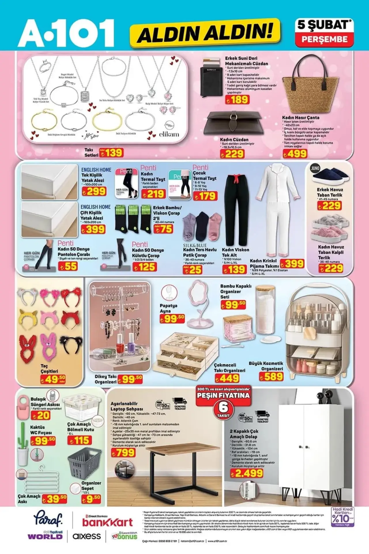 Birçok kampanyalı ürünün bulunduğu A101 5 Şubat 2026 aktüel kataloğunda teknolojiden, giyime, bakımdan gıdaya birçok ürün vatandaşların beğenisine sunuldu.