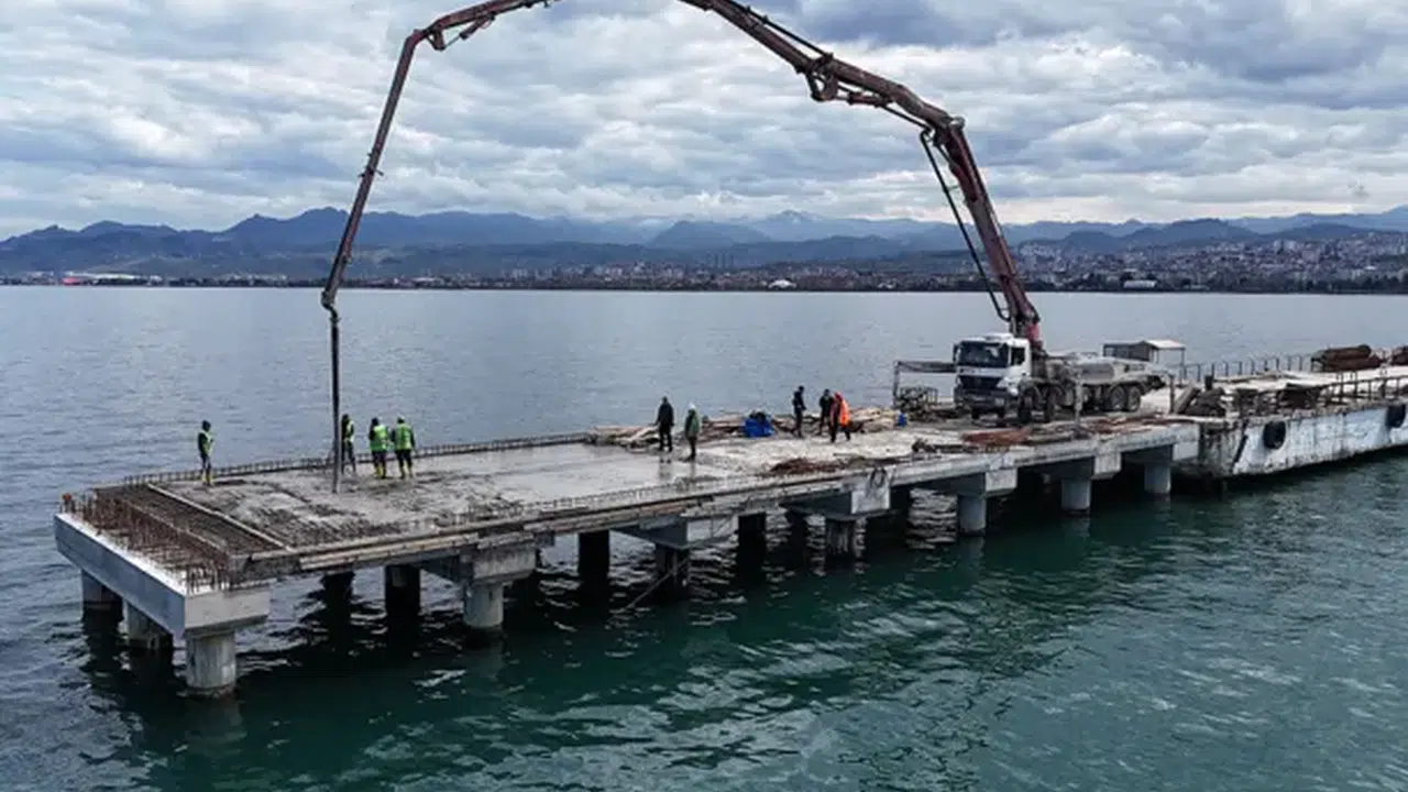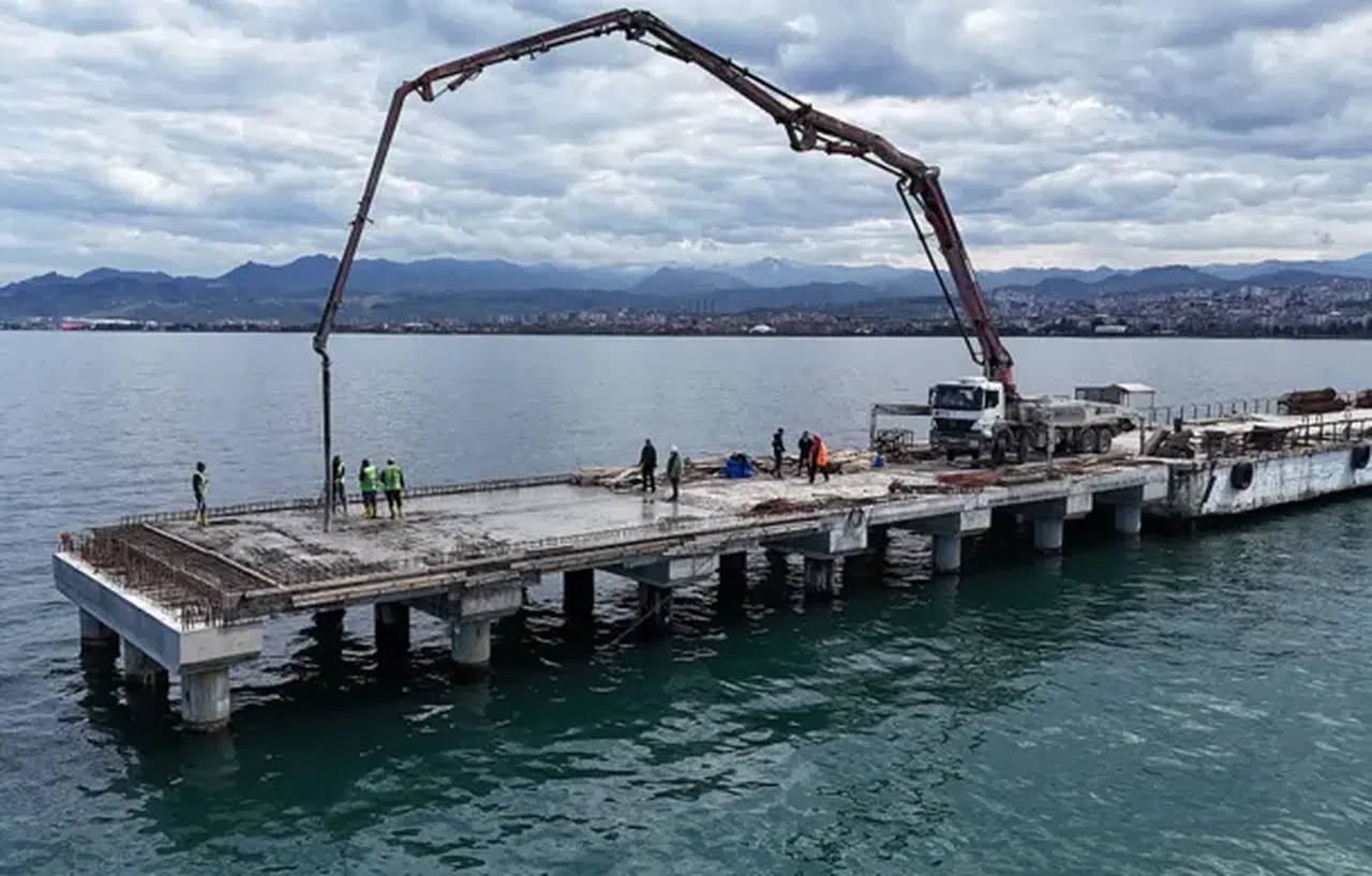 Altınordu Atatürk Rıhtımının uzatılması çalışmalarında beton dökümlerine başlandı.
