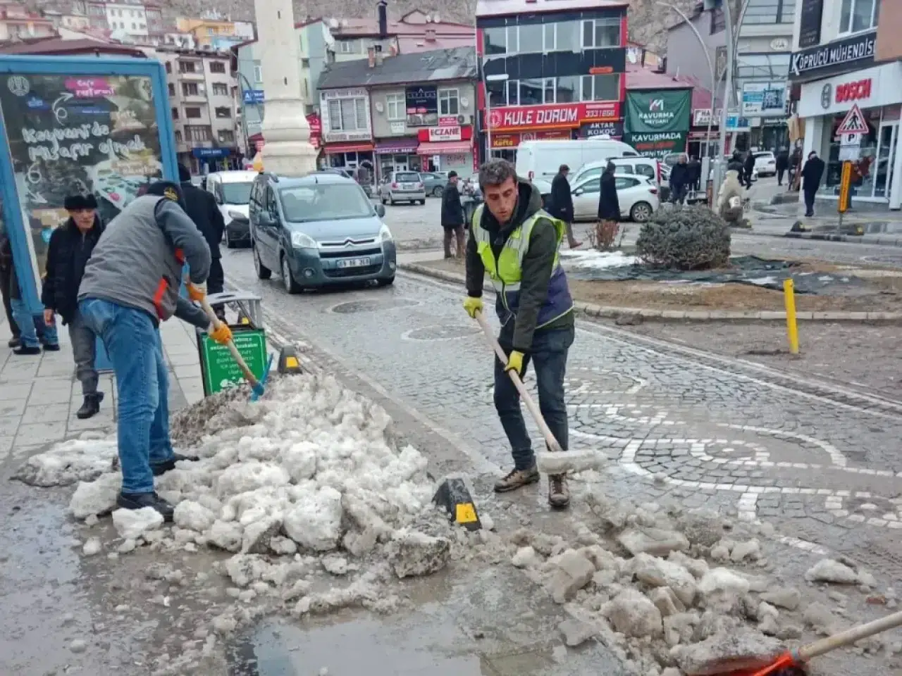 Fen İşleri Müdürlüğü ekipleri iş makineleriyle ana arterler, hastane yolları, okul çevreleri ve mahalle bağlantı yollarındaki kar birikintilerini temizlerken, tuzlama ekipleri buzlanmaya karşı önlem alıyor.Bayburt Belediyesi yetkilileri, sürücülerin kış lastiği ve zincir kullanmaları konusunda dikkatli olmalarını isterken, vatandaşlardan da park düzenine özen göstermeleri talep edildi.