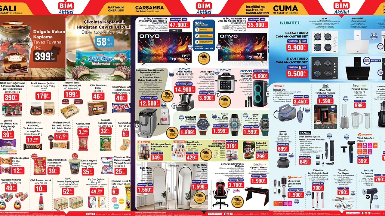 Alışveriş duraklarında BİM market olan vatandaşların beklediği indirimli ürün katalogları yayınlandı. 3 Şubat Salı, 4 Şubat Çarşamba ve 6 Şubat Cuma günlerine özel hazırlanan BİM kataloglarındaki ürünler listelendi. Aradığı ürünü uygun fiyata satın almak isteyen vatandaşlara şubat ayının ilk haftasında geçerli olacak indirimler duyuruldu. Peki, BİM'e hangi ürünler geliyor? İşte merak edilen BİM 3-4-6 Şubat 2026 aktüel ürünler kataloğu..
