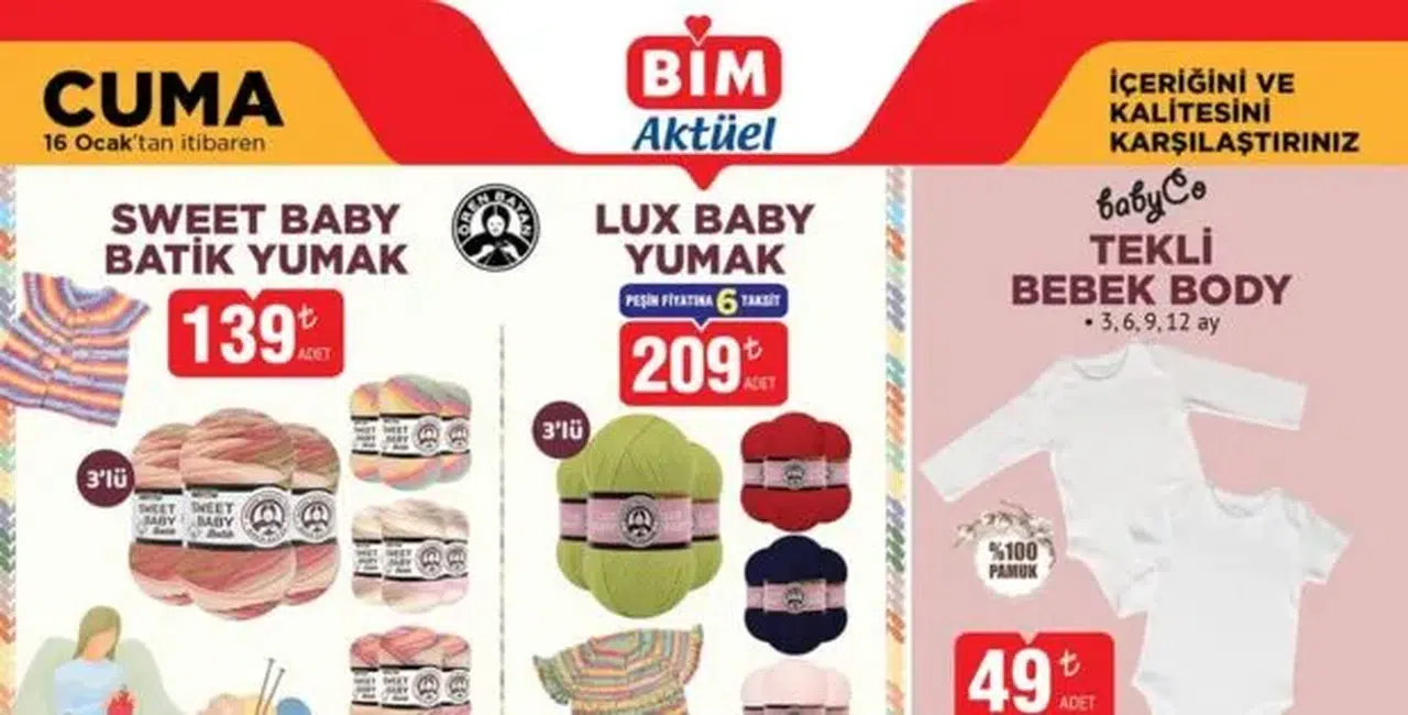 Bim, 16 Ocak 2026 tarihli Aktüel Ürünler Kataloğu'nu duyurdu. Yeni kampanya döneminde yer alacak indirimli ürünlerle dolu olan katalog, bu Cuma günü Bim mağazalarında müşterilerin beğenisine sunulacak. Katalogda bulunan ürünlerin tüm detaylarına ulaşmak için sayfamızı ziyaret edebilirsiniz.