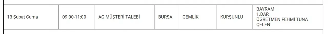 13 Şubat tarihinde Bursa'da bakım ve altyapı iyileştirme çalışmaları sebebiyle UEDAŞ tarafından planlı elektrik kesintileri yapılacaktır. Bu kesintiler, şehir genelindeki elektrik ağının düzenli işleyişini sağlamak için gerçekleştirilecektir. İşte ayrıntılar...