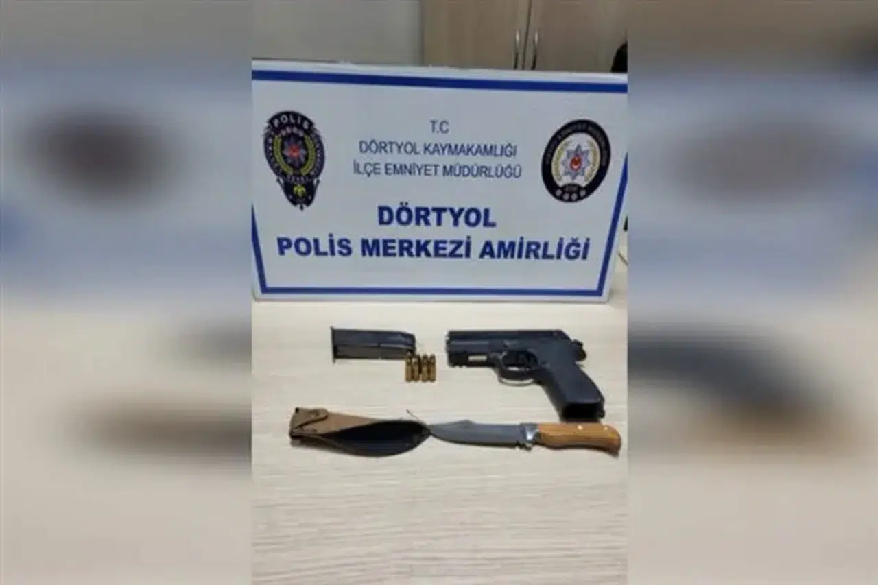 Hatay Emniyet Müdürlüğü ekiplerince Numune Evler Mahallesi’nde yapılan uygulama sırasında durumundan şüphelenilen A.E.K. isimli kişi durduruldu. Yapılan aramada 1 tabanca, 1 şarjör, 8 fişek ve 1 bıçak bulundu.