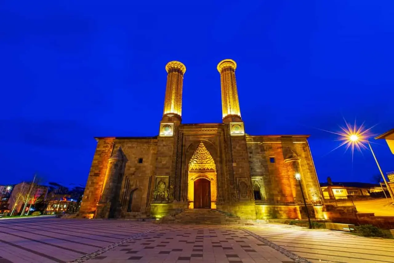 Etkileyici bitkisel desenler ve Orta Asya simgelerinden olan kartal ve yılan figürleri ile süslü taş kabartmaları, Çifte Minareli Medrese’nin bir sanat eseri olarak anılmasını sağlıyor. Tarihi atmosferini korumayı başarabilmiş olan medrese cumartesi ve pazartesi günleri hariç her gün 09.00 ile 18.00 arasında gezilebilir. Giriş için 20 TL ücret ödenmesi gerekiyor.
