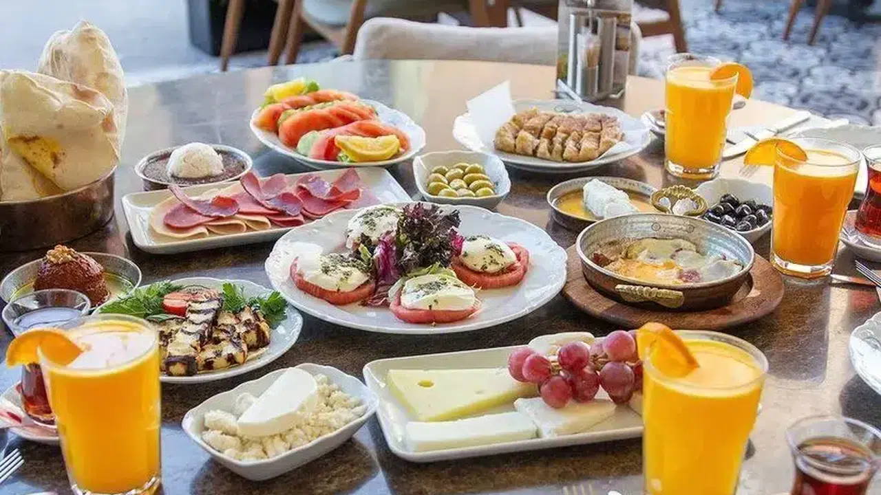 • Domates, salatalık, siyah zeytin, yeşil zeytin, beyaz ve siyah çikolata, reçel, tereyağı, bal, omlet, menemen, gözleme, beyaz peynir, sucuk ızgara, örgü peynir, dil peyniri, kaşar peyniri, patates kızartması, sınırsız çay