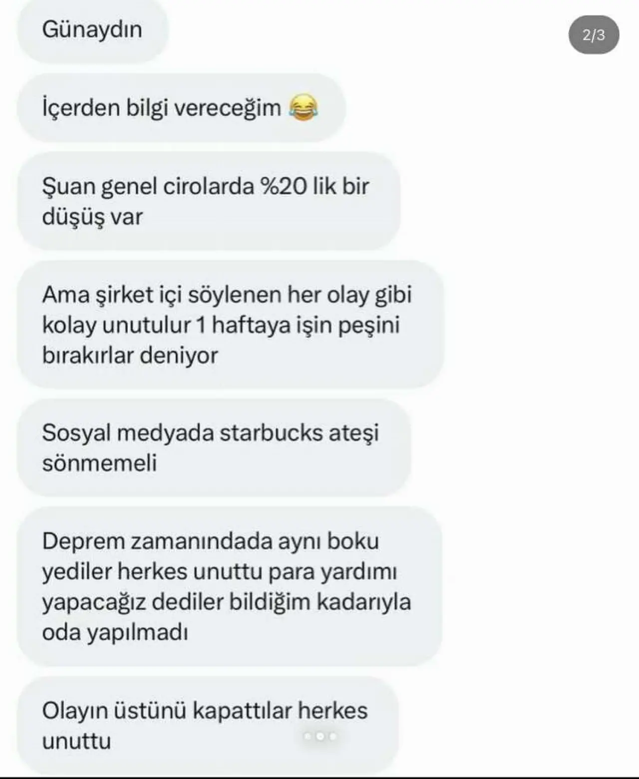 Öte yandan son günlerde Starbucks’ın İsrail’e mali destek sağladığına dair söylentilere karşı ise şirket tarafından açıklama yapılmıştır açıklamada, “Hayır.