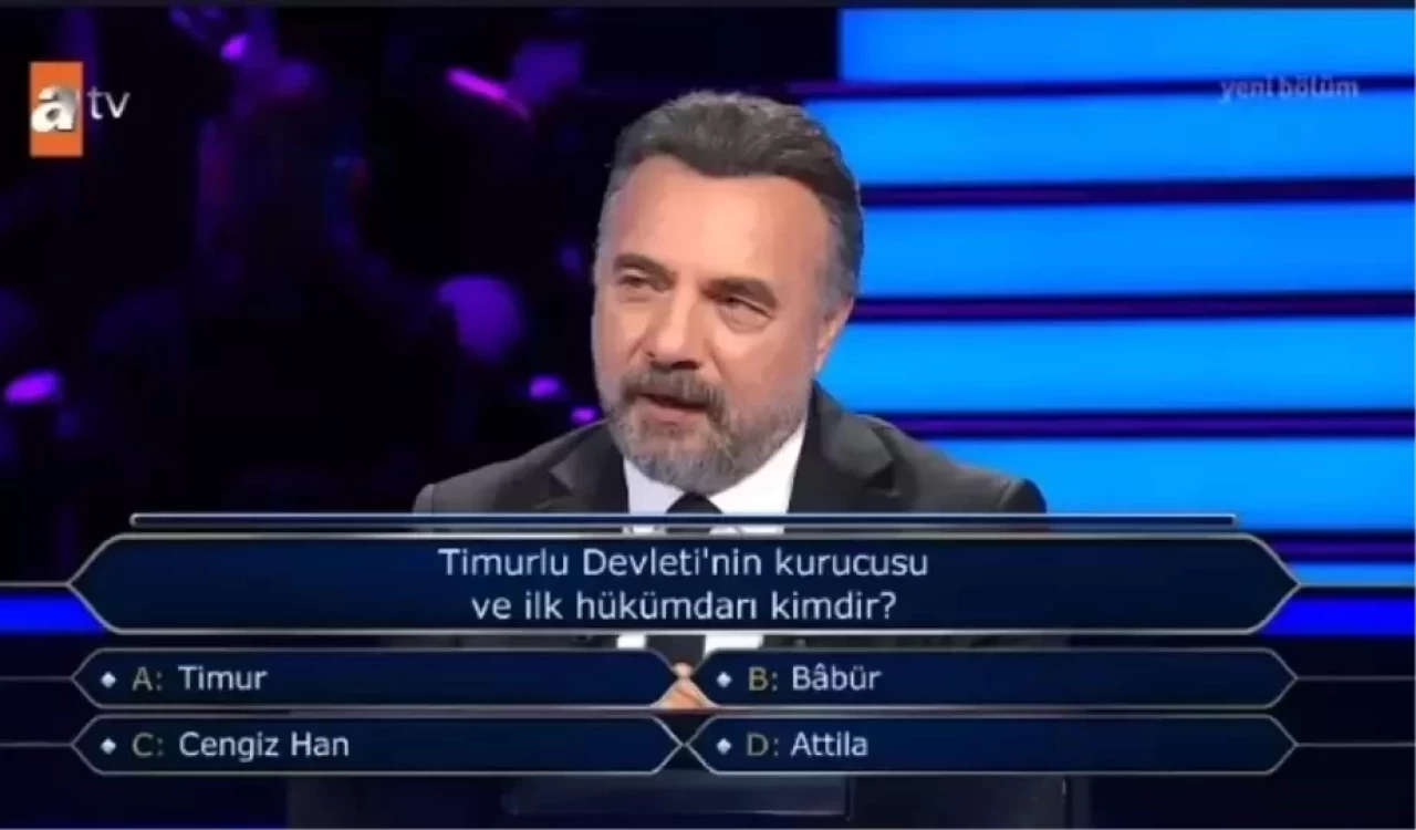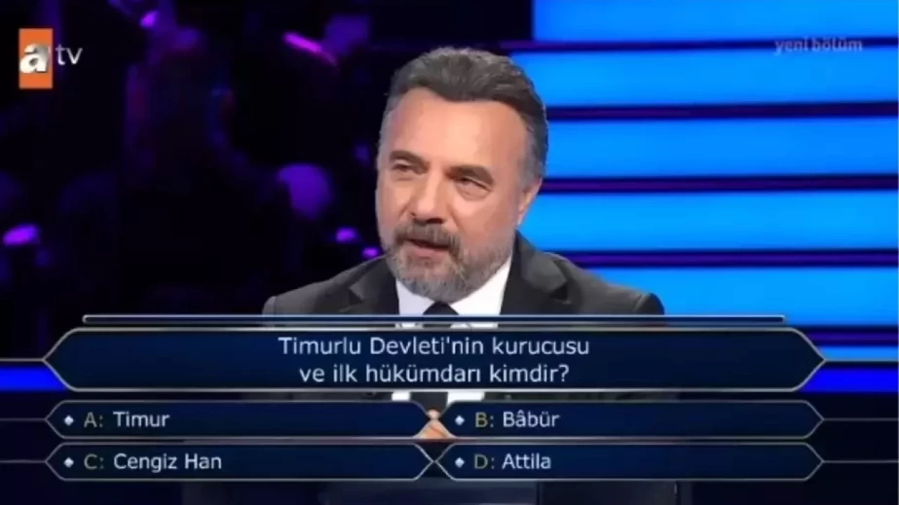 27 Eylül Cuma günü ATV ekranlarında yayınlanan Kim Milyoner Olmak İster yarışmasında, tarihi konulara dair ilginç bir soru soruldu. Yarışmanın sunucusu Oktay Kaynarca’nın sorduğu sorulardan biri, Timurlu Devleti’nin kurucusu ve ilk hükümdarı kimdir? şeklindeydi. Yarışmacıların yanıtlaması gereken bu soru, hem tarih bilgisi gerektiren hem de izleyiciler arasında merak uyandıran bir soruydu.
