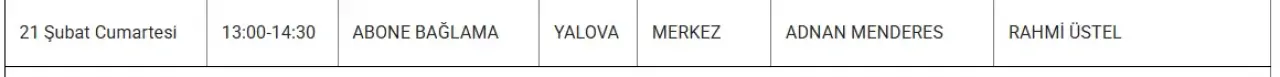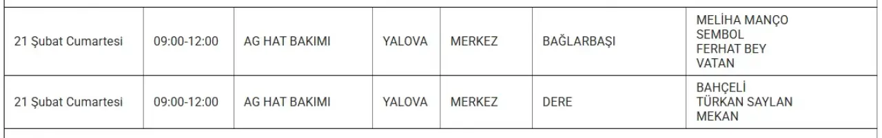 YALOVA YARIN 21 ŞUBAT ELEKTRİK KESİNTİSİ YAŞANACAK İLÇE VE MAHALLELER