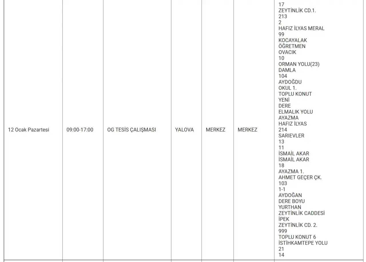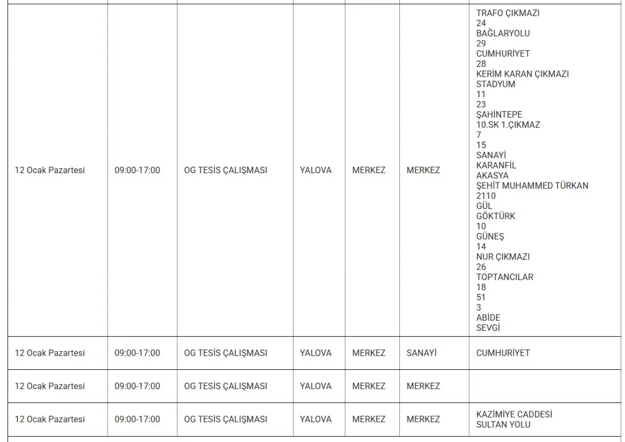 Yalova’da 12 Ocak Cumartesi günü birçok ilçede planlı elektrik kesintileri uygulanacak.
