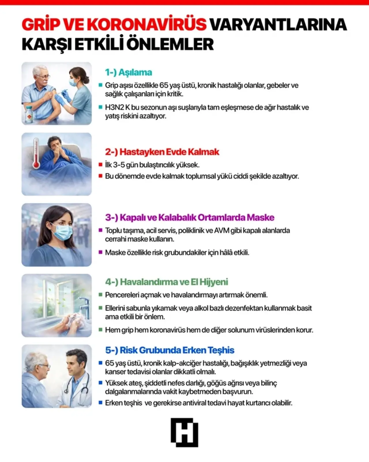 Şu an için uluslararası verilerin H3N2 alt soyunun öldürücü olduğuna dair net bir kanıt göstermediğini ama daha hızlı yayıldığını sözlerine ekleyen Dr. Süleyman Alpar, “Özellikle yaşlılar, kronik hastalığı olanlar ve bağışıklığı baskılanmış kişilerde hastaneye yatış ihtiyacını artırabiliyor” dedi ve ekledi: