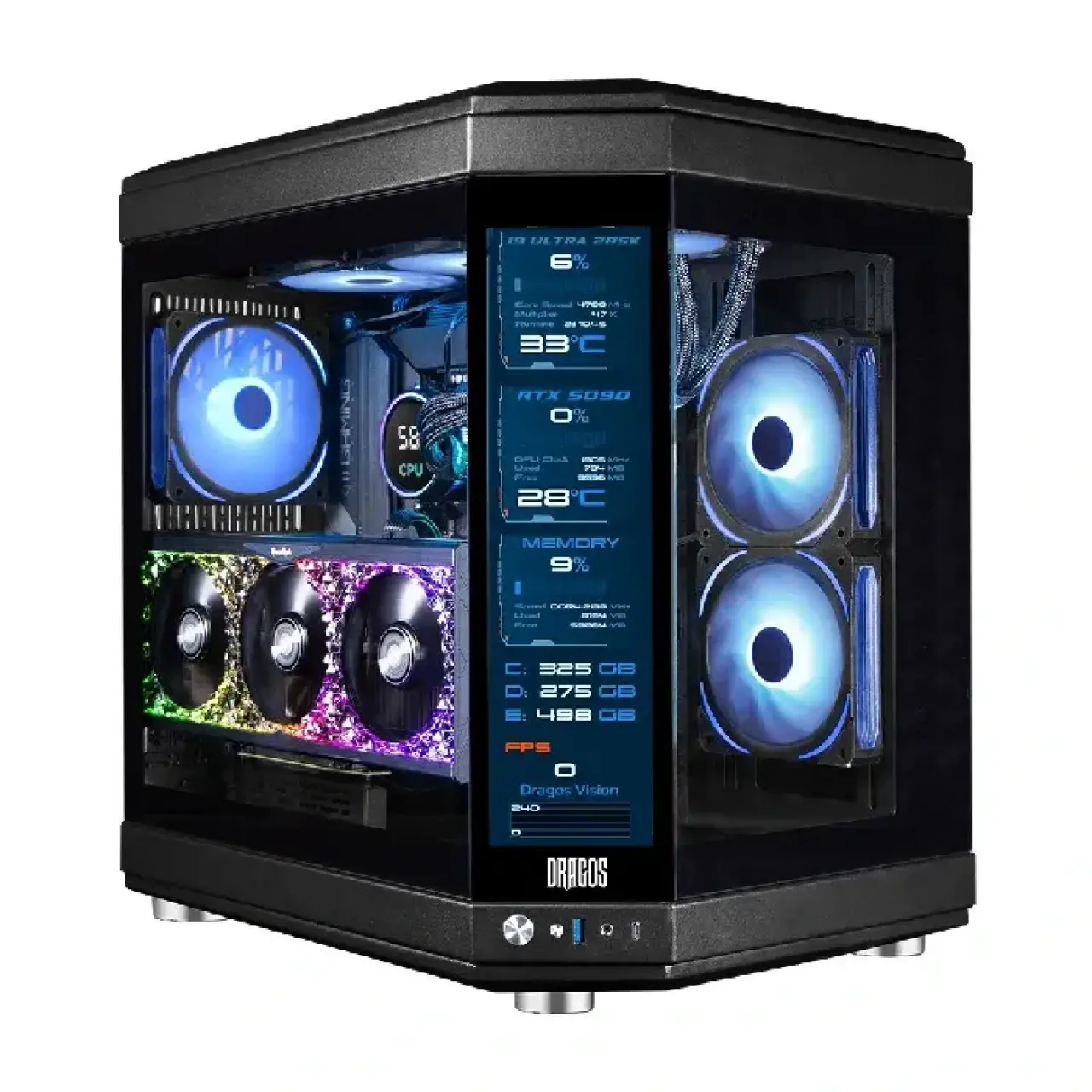 Dragos DRX7365, Intel Core Ultra 9 285K işlemcisi, 64 GB DDR5 RAM’i ve 2 TB NVMe 4.0 SSD’si ile üst düzey performans arayan oyuncular ve içerik üreticileri için geliştirilmiş bir canavardır. NVIDIA GeForce RTX 5090 ekran kartı, 4K çözünürlükte dahi en yeni oyunları yüksek kare hızlarıyla oynatırken ray tracing ve DLSS gibi gelişmiş teknolojilerle gerçekçi grafikler sunar.